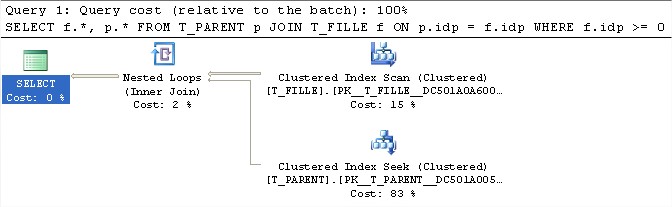 –Résultat : Index Seek sur les deux tables : T_FILLE et T_PARENT.